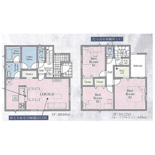 号棟番号:1号棟 地域【その他制限事項】公有地拡大推進法 都市再生特別措置法 建物面積に別途ルーフバルコニー約4.86平米有り 駐車場2台(車種による) |